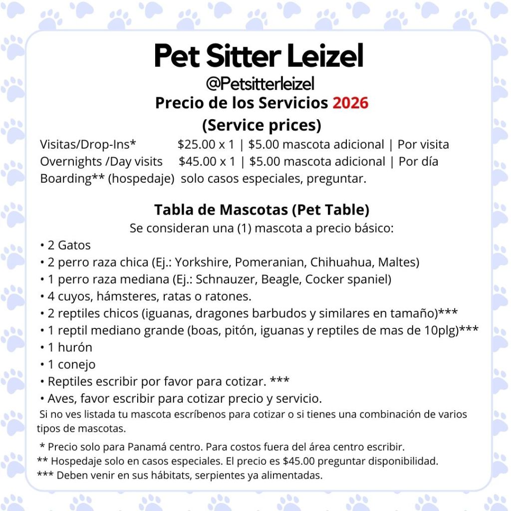 Ofrecemos varias opciones de cuidado y compañía para sus mascotas: (English below)